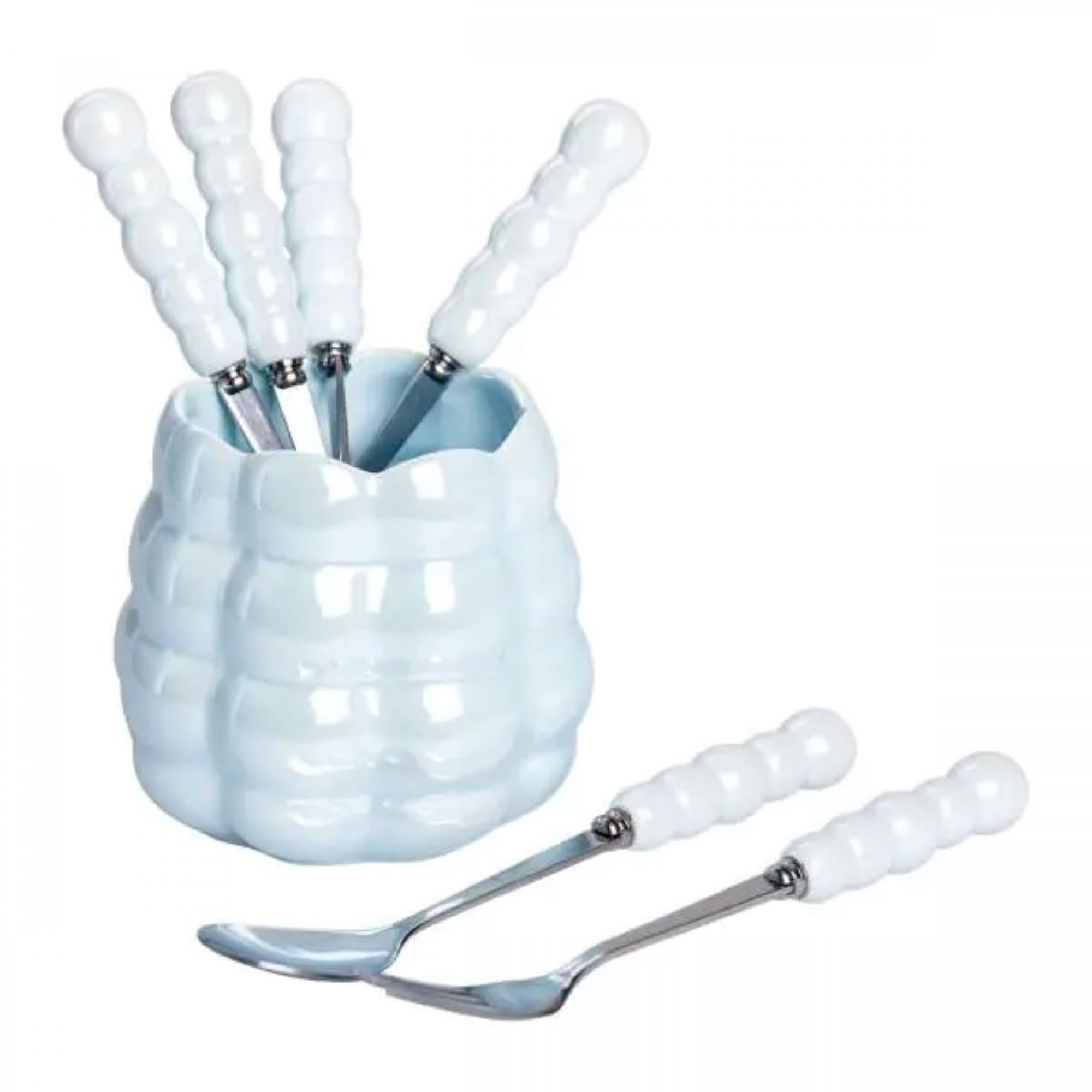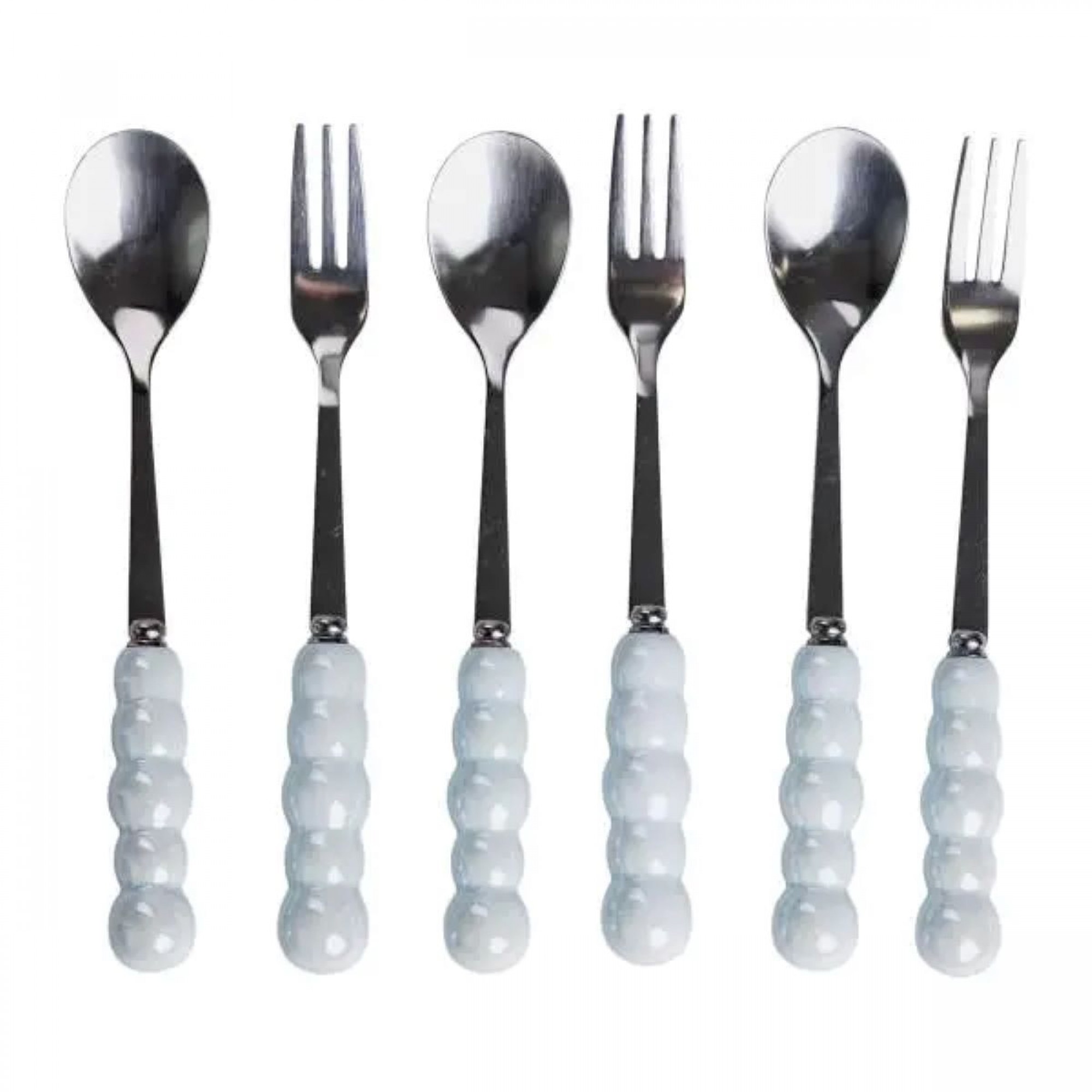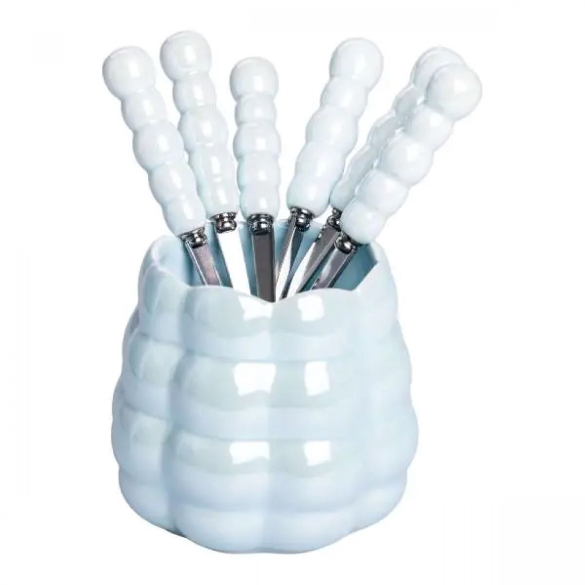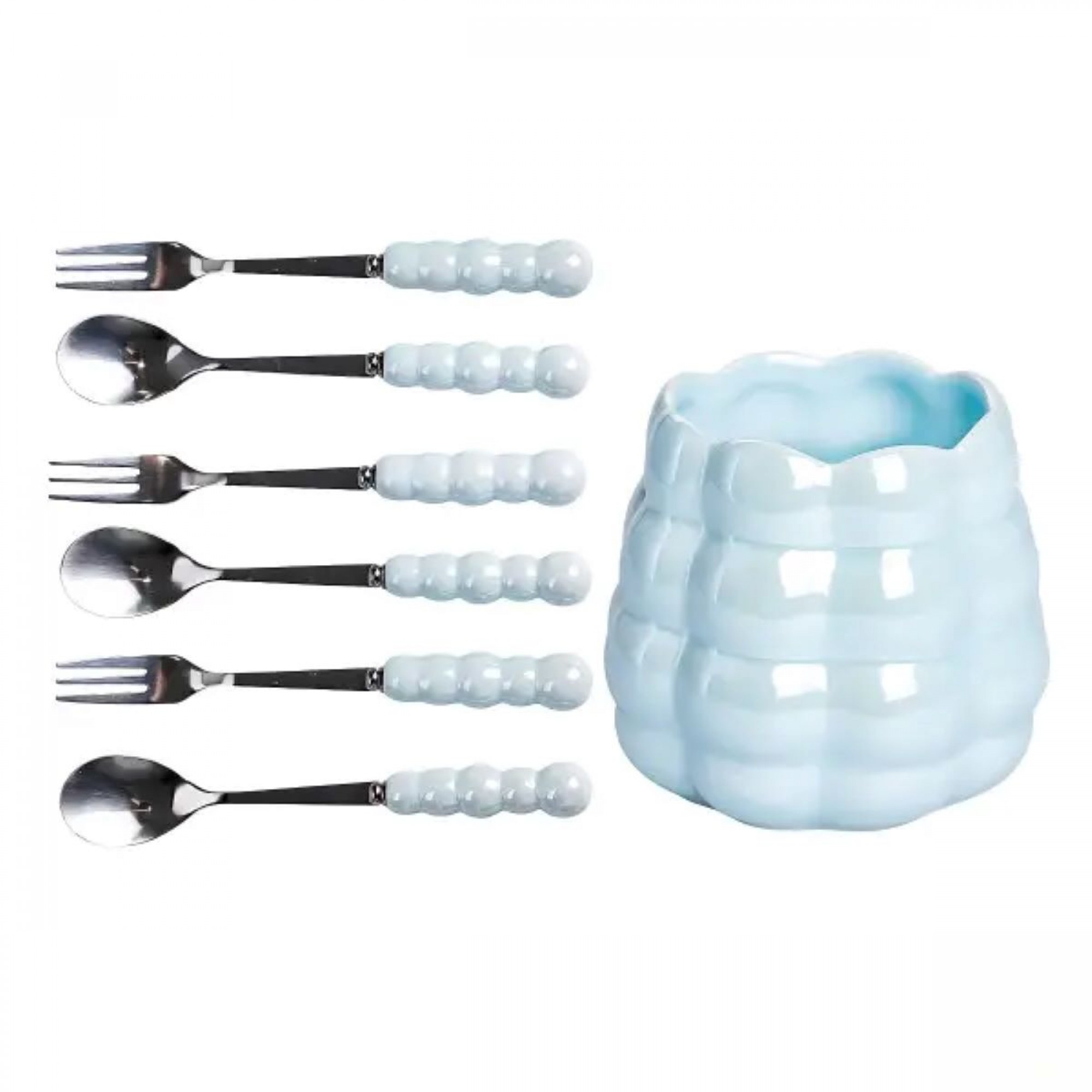 Набор десертных вилок и ложек на 3 персоны с подставкой из керамики 7 предметов Голубой HP-20-57