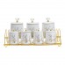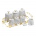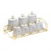 Ищете идеальное решение для организации и хранения специй на вашей кухне? Этот стильный набор баночек для специй не только поможет поддерживать порядок, но и станет элегантным элементом декора. Характеристики: Материал банок: Керамика Материал подставки: Металл Объем баночек для специй: 0.55 л и 0.25 л Преимущества: Герметичные крышки: Крышки каждой баночки обеспечивают герметичное хранение специй, сохраняя их свежесть и аромат, защищая от влаги и посторонних запахов. Золотистая металлическая подставка: Подставка придает набору роскошный вид, компактно размещая все баночки и экономя пространство на вашей кухне. Элегантный декор: Набор не только функциональный, но и стильный, что делает его отличным дополнением к любому кухонному интерьеру. Этот набор станет идеальным помощником в приготовлении блюд и отличным подарком для тех, кто любит готовить и ценит организацию на кухне.