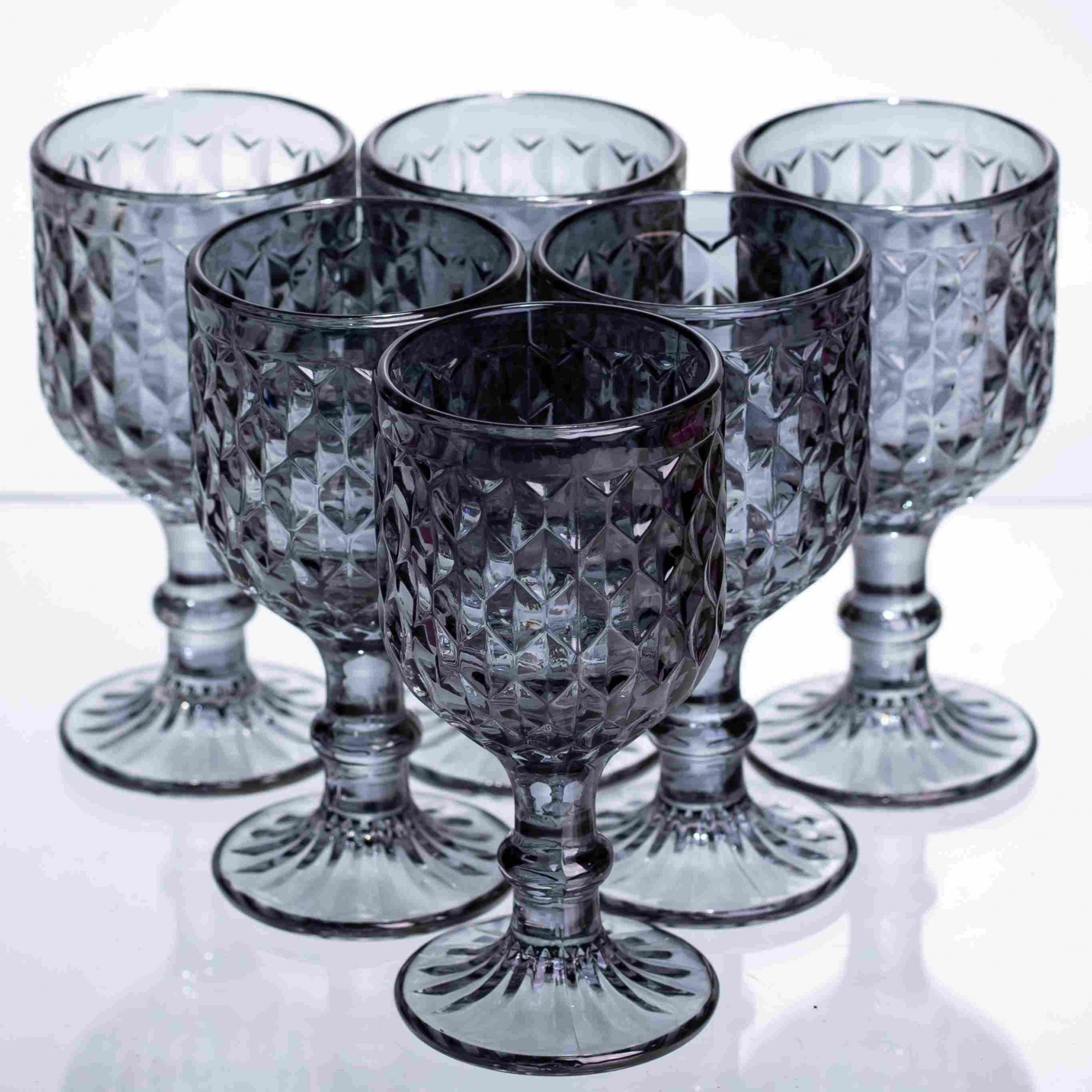 Элегантный комплект рюмок в графитовом цвете с выразительной алмазной гранью. Стильный аксессуар для сервировки стола, который отлично сочетается с современной посудой и дополняет подачу крепких напитков. Особенности: Фактурный дизайн: Глубокий рельефный узор по всему периметру создает красивую игру света и делает рюмки устойчивыми в руке. Графитовый оттенок: Темное тонированное стекло выглядит солидно и современно. Практичная форма: Удобная ножка и расширяющаяся чаша делают использование комфортным. Характеристики: Материал: стекло Объём: 50 мл Высота:10 см Диаметр: 4,5 см Вес: 800 г