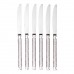 Набор столовых ножей состоит из 6 штук, упакованных в блистерную упаковку. Классический дизайн придает приборам элегантный вид. Благодаря сдержанному оформлению ножи легко сочетаются с различными стилями столовой посуды. Основные характеристики набора столовых ножей: Количество предметов в наборе: 6 шт.; Количество персон: 6; Длина: 23 см; Материал: нержавеющая сталь; Упаковка: пакет. Изготовленные из нержавеющей стали, ножи имеют прочную конструкцию, устойчивую к коррозии и механическим повреждениям. Лезвие обеспечивает комфортное нарезание различных продуктов, а эргономичная форма ручки способствует удобному удержанию. Серебристы цвет добавляет эстетической привлекательности, сохраняя при этом практичность в использовании. Набор подходит как для ежедневного использования, так и для праздничных сервировок. Блистерная упаковка обеспечивает защиту ножей во время транспортировки и удобство хранения. Приборы легко очищаются вручную или в посудомоечной машине без потери блеска и качества покрытия.