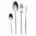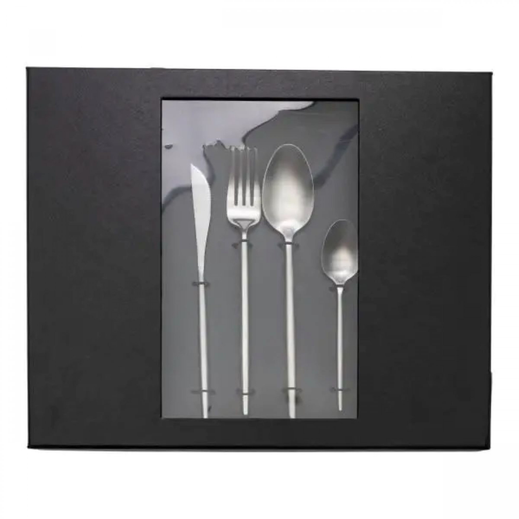 Набор столовых приборов серебристого цвета состоит из 24 предметов: 6 столовых ложек, 6 чайных ложек, 6 вилок и 6 столовых ножей. Каждый предмет имеет классический дизайн без лишних декоративных элементов, что делает их универсальными для ежедневного использования или сервировки праздничного стола. Столовые приборы имеют гладкую полированную поверхность, которая легко очищается и не задерживает загрязнения. Основные характеристики: Количество предметов в наборе: 24 шт.; Количество персон: 6; Материал: нержавеющая сталь; Упаковка: коробка; Размеры приборов: длина столового ножа: 21.5 см; длина столовой ложки: 22.5 см; длина столовой вилки: 22 см; длина чайной ложки: 14.5 см. Комплектация набора: столовый нож: 6 шт.; столовая ложка: 6 шт.; столовая вилка: 6 шт.; чайная ложка: 6 шт.. Материал изготовления - нержавеющая сталь, которая отличается прочностью, устойчивостью к коррозии и долговечностью. Лезвия ножей имеют заточенную кромку, что обеспечивает удобное нарезание продуктов. Вилки и ложки имеют эргономичную форму, что способствует комфортному удержанию в руке во время приема пищи. Все предметы набора можно мыть в посудомоечной машине без риска потери блеска или повреждения поверхности. Комплект поставляется в базовой упаковке, которая защищает приборы от механических повреждений во время транспортировки. Набор подходит для использования в домашних условиях, заведениях общественного питания или как вариант для временного жилья. Благодаря стандартным размерам и нейтральному дизайну эти столовые приборы легко сочетаются с различными стилями посуды и текстиля для сервировки стола.
