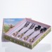 Набор столовых приборов Rabbit Family из 4 предметов предназначен для сервировки десертов, пирожных и сладких закусок во время чаепития или праздничного стола. Формат из двух десертных ложек и двух десертных вилок позволяет подавать порционные блюда, создавая целостное оформление сервировки без лишних элементов. Рабочая часть приборов изготовлена из нержавеющей стали с глянцевым покрытием, что обеспечивает аккуратный вид и удобство использования. Фарфоровые ручки продуманы для комфортного удержания и декорированы изображениями кроликов, которые гармонично сочетаются с десертной подачей и тематической посудой. Длина каждого предмета составляет 15 сантиметров, что делает их оптимальными для десертных блюд. Набор подходит для ежедневного использования, праздничных событий, семейных встреч или чаепития, помогая поддерживать аккуратную и организованную сервировку стола. Характеристики: Количество предметов: 4 Комплектация: 2 десертные ложки, 2 десертные вилки Материал рабочей части: нержавеющая сталь Материал ручек: фарфор Поверхность: глянцевая