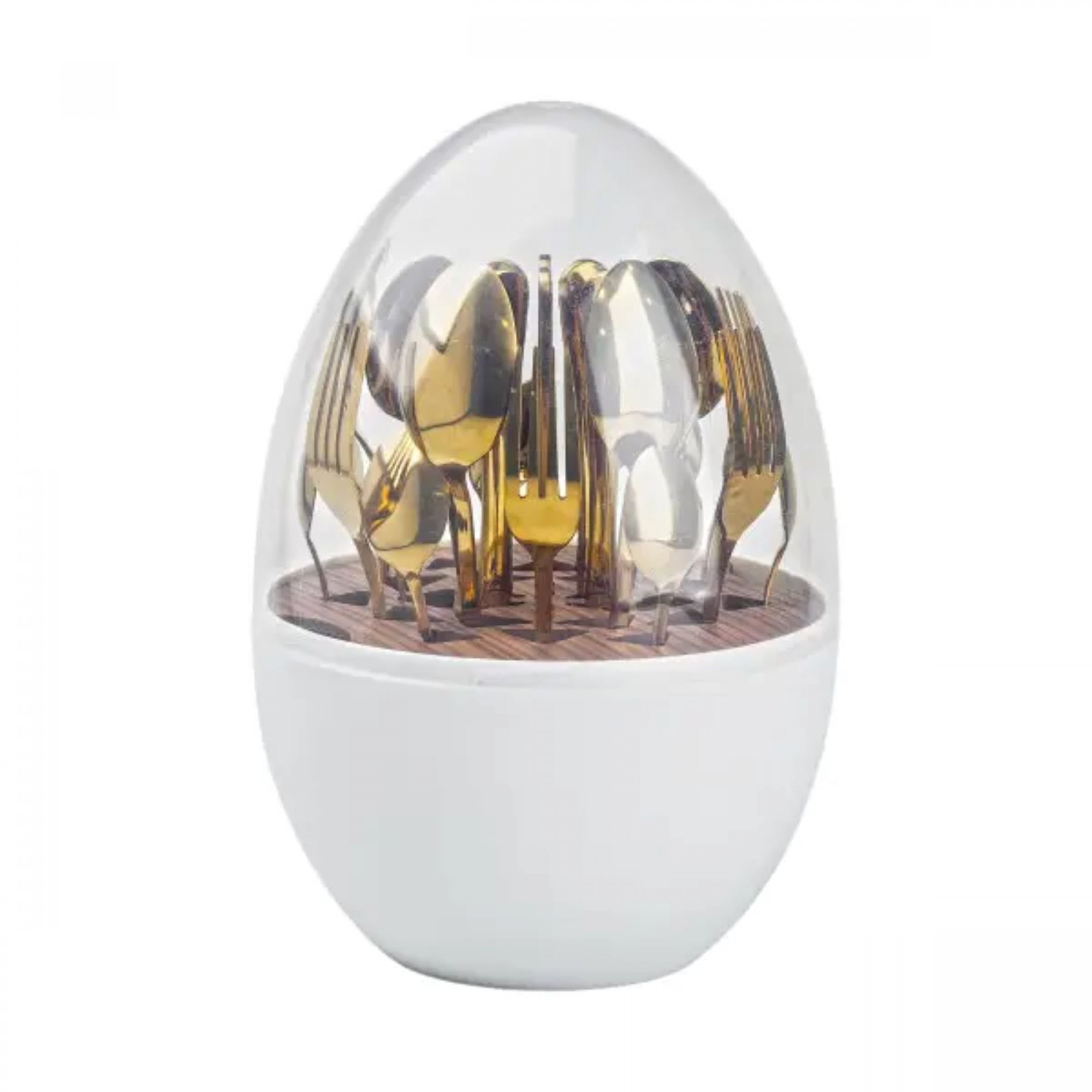 Этот изысканный набор столовых приборов, состоящий из 24 предметов, станет настоящим украшением вашей кухни. Изготовленные из высококачественной нержавеющей стали с золотым покрытием, приборы отличаются элегантным классическим дизайном и безупречным качеством. Они не тускнеют со временем, сохраняя блеск и красоту в течение долгих лет. Эргономичные ручки приборов удобно ложатся в руку, обеспечивая комфорт во время употребления пищи. Дополнительно, элегантная подставка в форме яйца не только экономит место на столе, но и добавляет стиля вашей сервировке. Характеристики: Тип: набор столовых приборов Материал: нержавеющая сталь с золотым покрытием Количество человек: 6 Столовый нож: 6 шт, длина 22.5 см Столовая ложка: 6 шт, длина 20 см Чайная ложка: 6 шт, длина 13.5 см Столовая вилка: 6 шт, длина 20 см Особенности: с подставкой в форме яйца Преимущества: Высококачественная нержавеющая сталь с золотым покрытием для долговечности и элегантности Элегантный классический дизайн, который придает роскошный вид Эргономичные ручки для комфортного использования Стильная подставка для удобства хранения и эстетического оформления сервировки Уход: Рекомендуется мытье вручную с мягкими моющими средствами для сохранения блеска и избежания царапин.