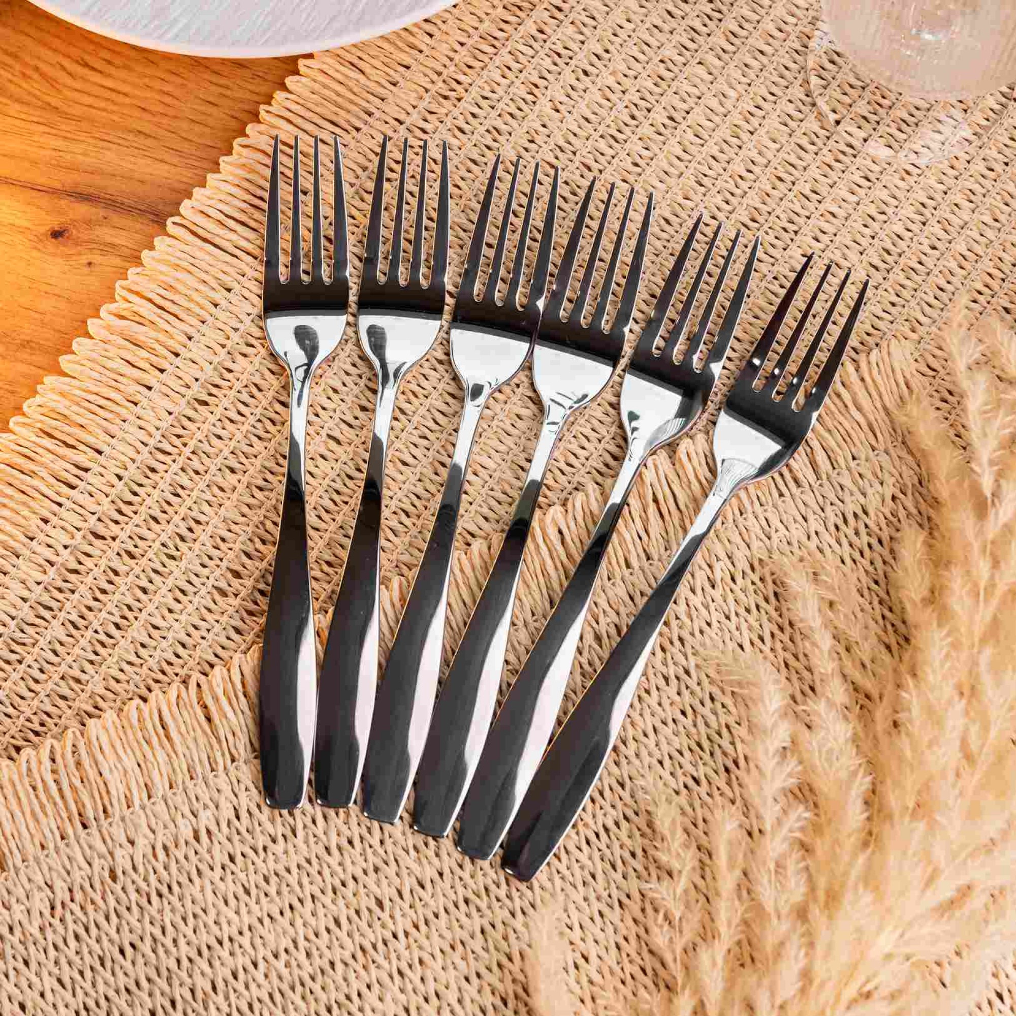 Столовые приборы с лаконичным дизайном и зеркальной полировкой. Отсутствие декоративных элементов и классическая форма делают их пригодными для любого стиля сервировки – от повседневного домашнего использования до торжественных приемов. Особенности: Материал: качественная пищевая нержавеющая сталь Материал устойчив к коррозии, не вступает в реакцию с пищей и сохраняет свои свойства при длительном контакте с влагой. Зеркальный финиш: Глянцевая полировка всей поверхности убора обеспечивает эстетический блеск и безупречную гладкость. Качественная обработка зубцов способствует комфортному использованию и легкому уходу. Размер: Длина изделия - 20 см Вилки имеют сбалансированный вес и стандартные пропорции для употребления других горячих блюд, салатов и закусок. Практичность: Прочная конструкция устойчива к изгибам. Приборы подходят для регулярного мытья в посудомоечной машине. Характеристики: Материал: нержавеющая сталь Длина: 20 см Вес набора: 200 г