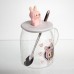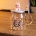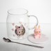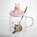 Новогодняя большая стеклянная чашка "Лабуба" с крышкой и ложкой 600 мл, Праздничная кружка чашка для детей на подарок Розовый FM-56B