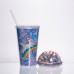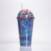 Пластиковый стакан с трубочкой и крышкой 400 мл многоразовый Голубой HP-18-2Y