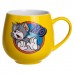 Праздничная фарфоровая чашка "Веселые Герои" 400 мл, Кружка детская с фарфора на подарок Желтая FM-13NO