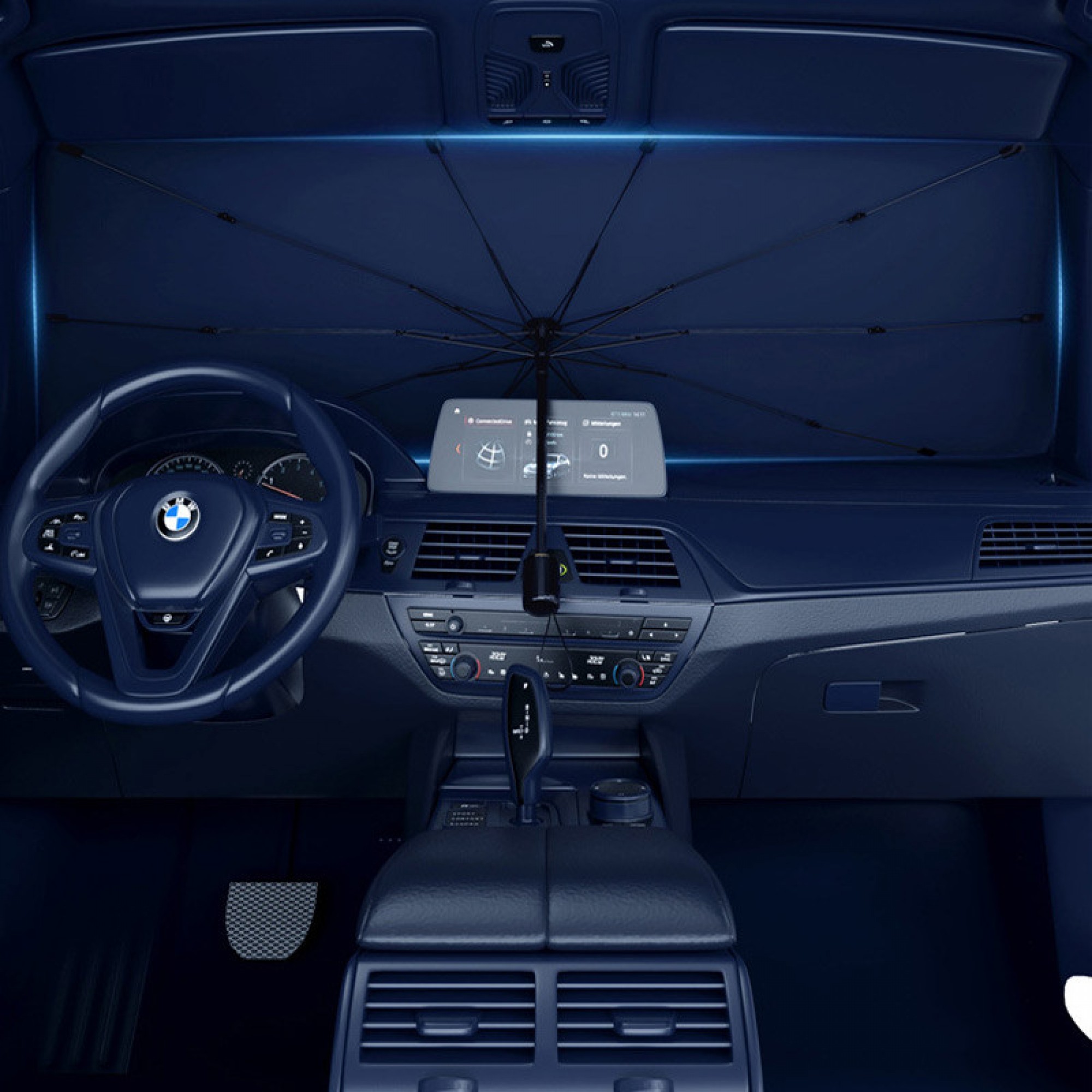 Солнцезащитный зонтик для автомобиля (140×80 см) эффективно защищает салон от жары и УФ-излучения, снижая температуру внутри до 30%.