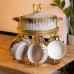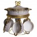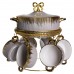 Суповой сервиз из высококачественного фарфора станет украшением любого стола и придаст сервировке нотку изысканности. Элегантное сочетание белого цвета с золотыми и черными акцентами делает набор особенно нарядным и современным. В комплект входит супница с крышкой и шесть суповых тарелок, на прочной металлической подставке с золотым покрытием. Благодаря удобной форме и продуманному дизайну сервиз не только красив, но и практичен в использовании. Основные характеристики супового сервиза: Материал: фарфор + металл; Размер: 25×25×33 см; Объем супницы: 2 литра; Объем тарелок: 400 мл; Диаметр супницы: 22 см. Диаметр тарелок: 11см. Такой набор прекрасно подойдет для семейных обедов, праздничных ужинов или торжественных мероприятий. Он станет отличным подарком на свадьбу, новоселье или юбилей, подчеркивая вкус и внимание к деталям хозяев дома.