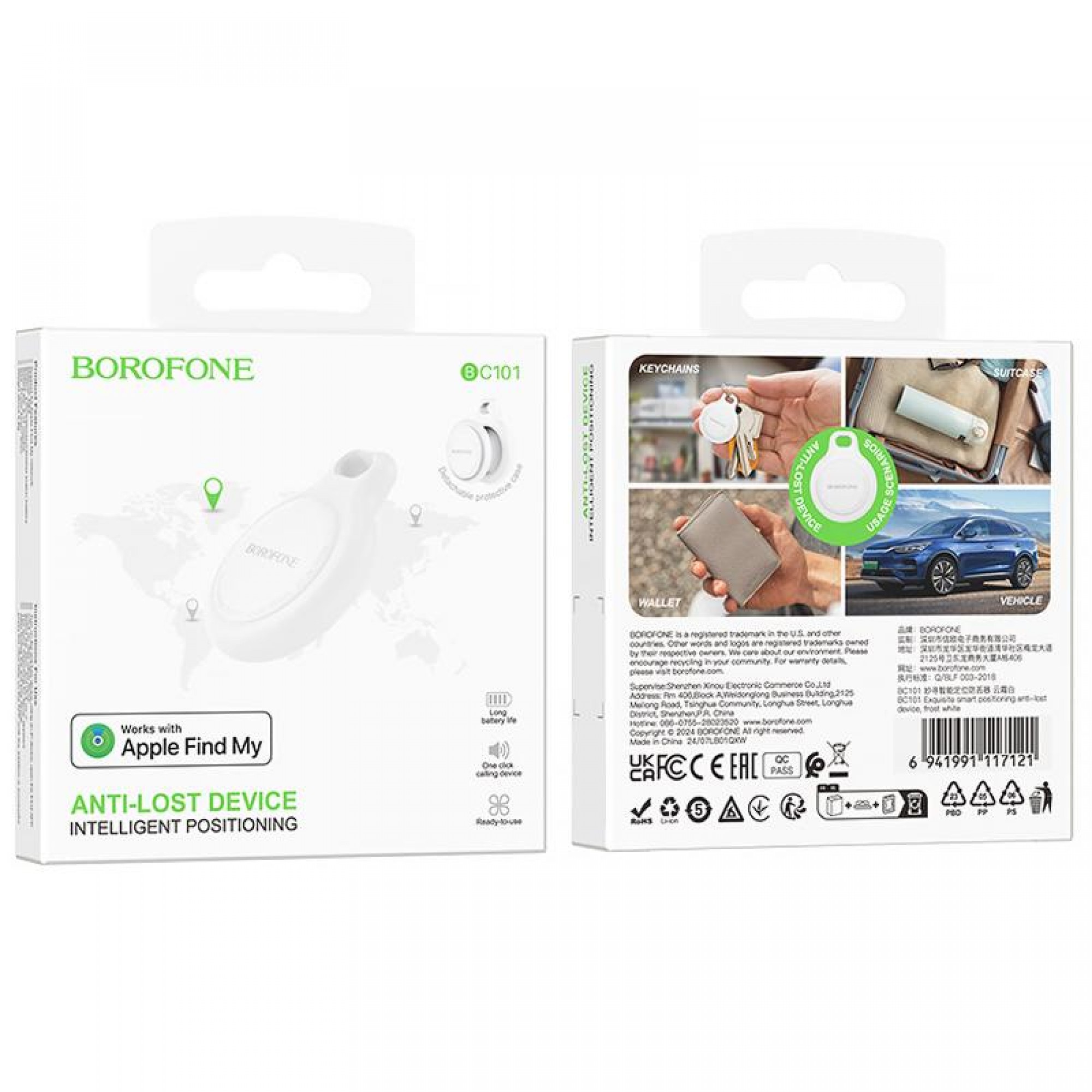 Трекер Borofone BC101 поддерживает Apple Find My Network, что позволяет точно определять местоположение ваших вещей. Компактный и легкий дизайн делает его удобным в использовании, а долговременная автономность работы обеспечивает надежность в течение длительного времени. Корпус выполнен из прочного и легкого ABS-пластика, что гарантирует долговечность устройства.