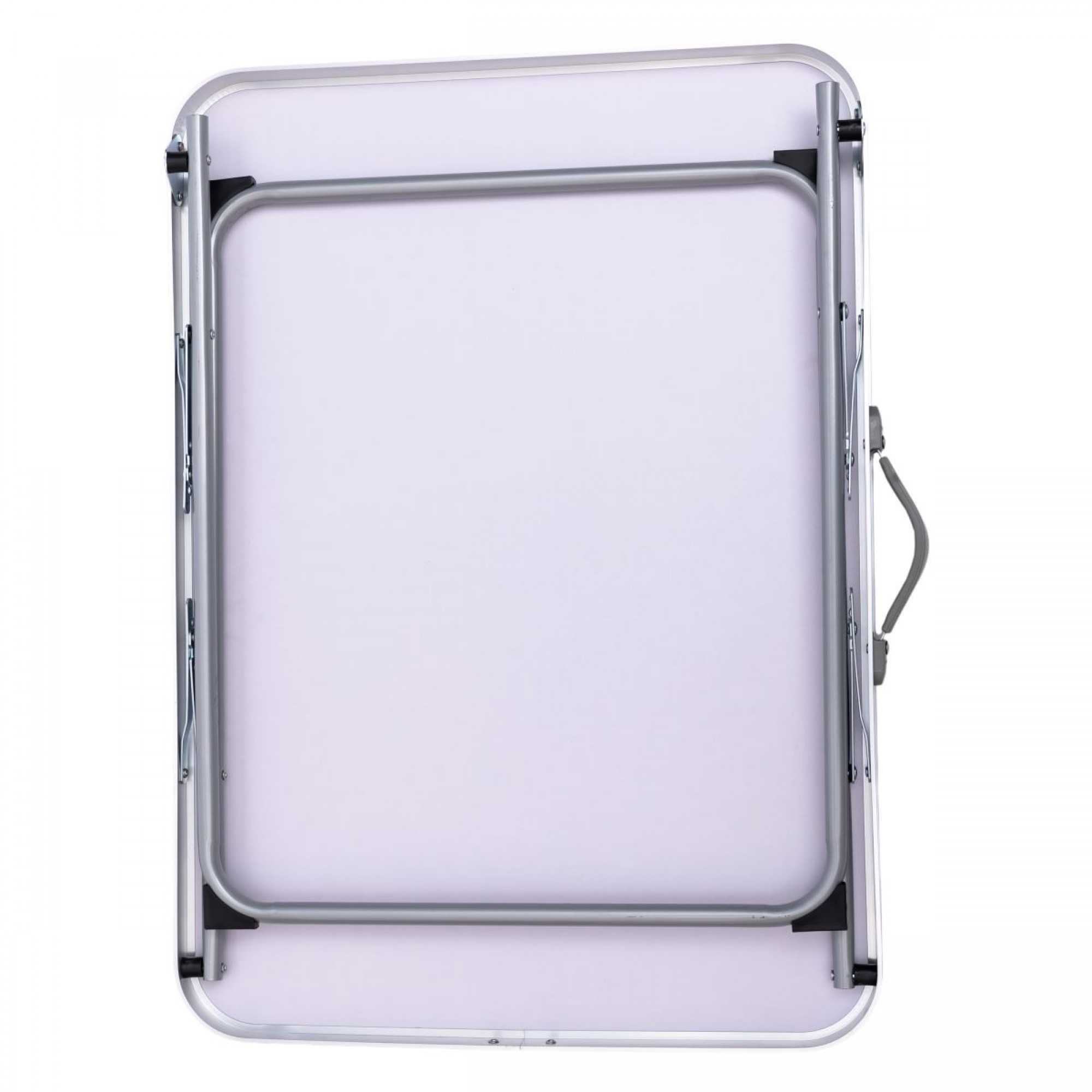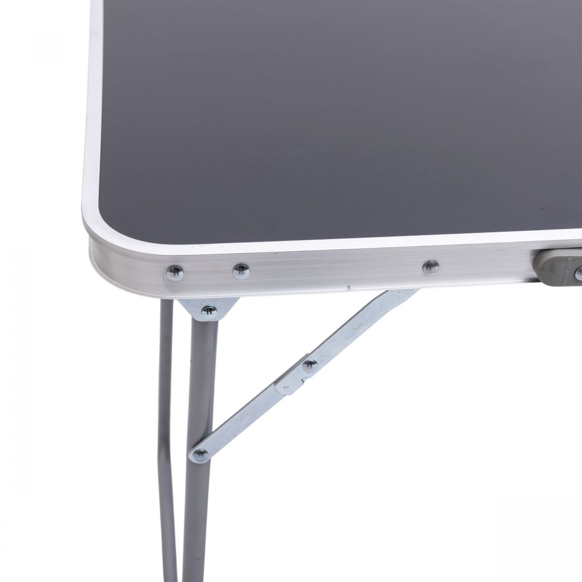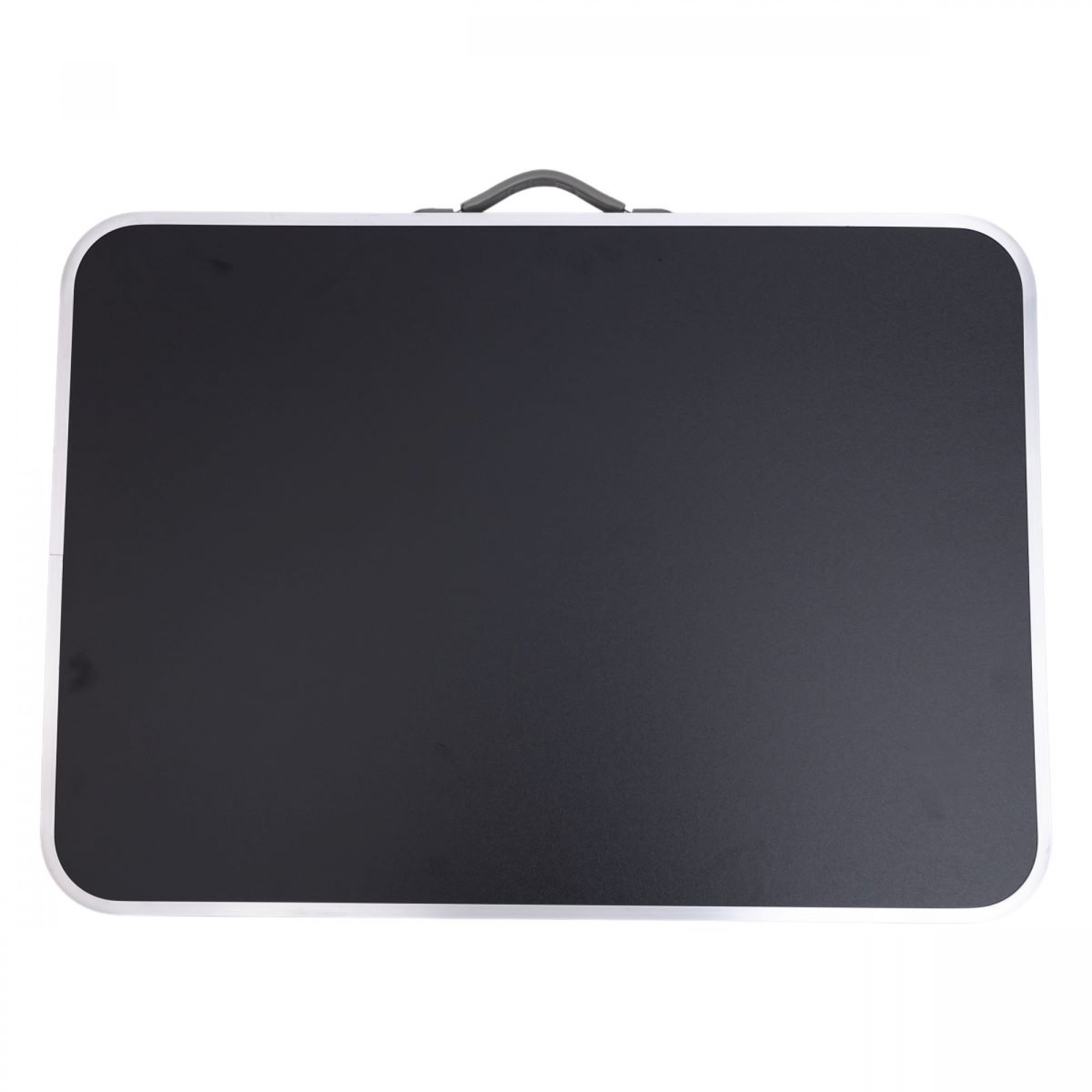 Складаний стіл з алюмінієвим каркасом — зручне рішення для виїздів на природу, кемпінгу або використання в умовах обмеженого простору. Його конструкція передбачає можливість швидкого складання і розкладання без додаткових інструментів. Після складання стіл набуває компактної форми, зручно фіксується і оснащений ручкою для перенесення, що спрощує транспортування. Поверхня стільниці виготовлена з МДФ, що поєднує легкість і достатню міцність для повсякденного використання. Каркас виконаний з алюмінієвого сплаву і доповнений сталевими елементами — така конструкція стійка до вологи і корозії. Ніжки фіксуються у відкритому положенні металевими упорами, а в складеному стані акуратно прибираються всередину, утворюючи єдину плоску поверхню. Така конструкція зручна для зберігання і не займає багато місця. Стіл підходить для використання на терасі, в саду або в поїздках. Завдяки продуманим деталям, таким як зручна ручка для перенесення і захисні накладки по краях стільниці, виріб відповідає основним вимогам функціональності і практичності. Характеристики складного столу для пікніка: Розміри столу в розкладеному вигляді: 70 x 50 x 60 см; Розміри столу в складеному вигляді: 70 x 50 x 5,5 см; Колір: чорний; Матеріал стільниці: МДФ; Матеріал каркаса (опор): високоякісний алюмінієвий сплав + залізна труба. Призначення розкладного столу: для кемпінгу та відпочинку на природі; для використання на дачі, терасі або в саду; зручний для транспортування та зберігання; підходить для використання в умовах обмеженого простору. Завдяки компактності, легкій вазі та надійній конструкції, складаний стіл стане практичним помічником у будь-якій ситуації, де потрібен зручний мобільний робочий або обідній стіл.