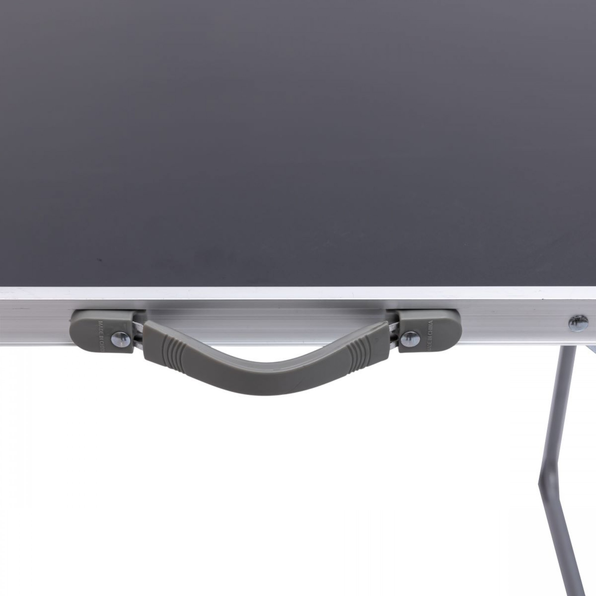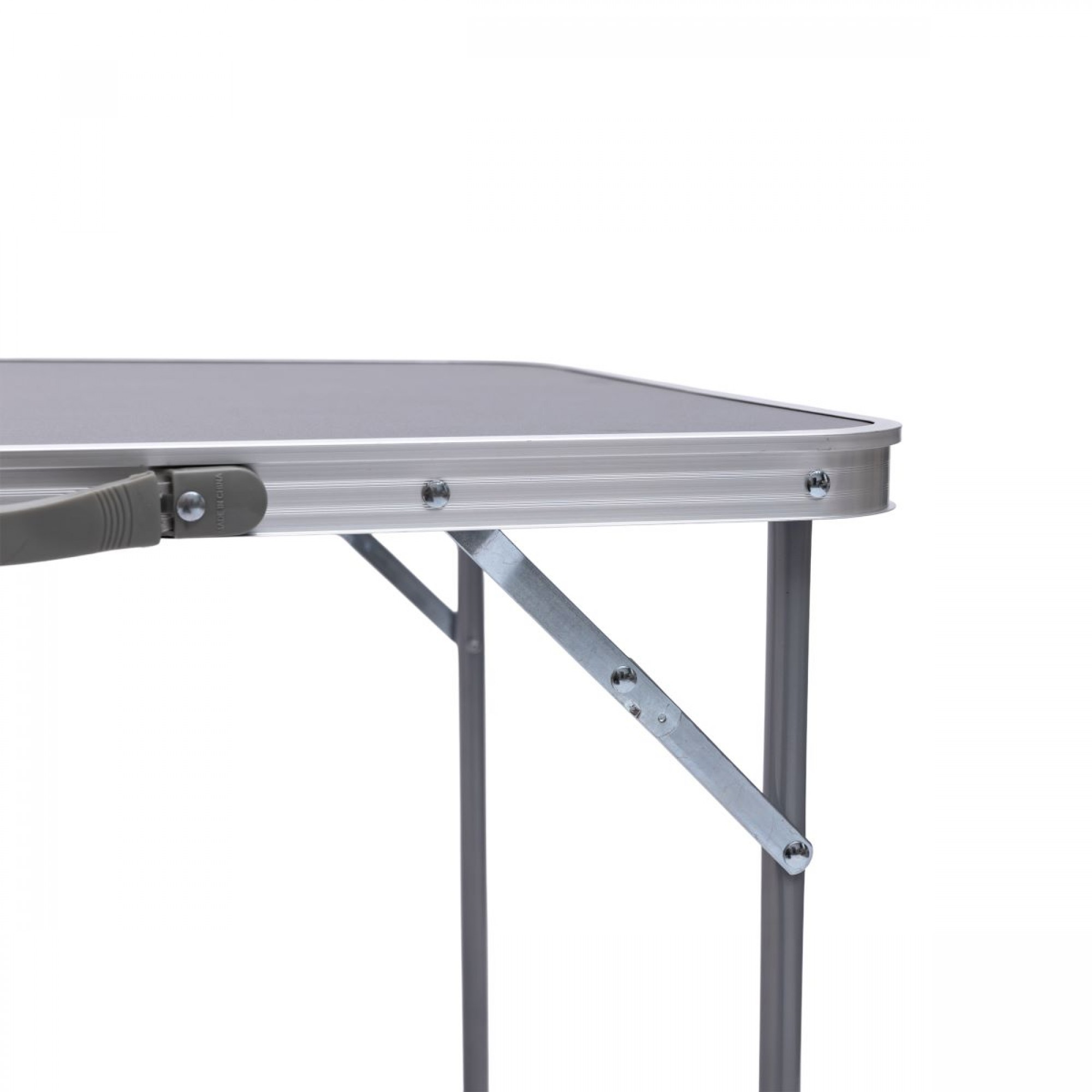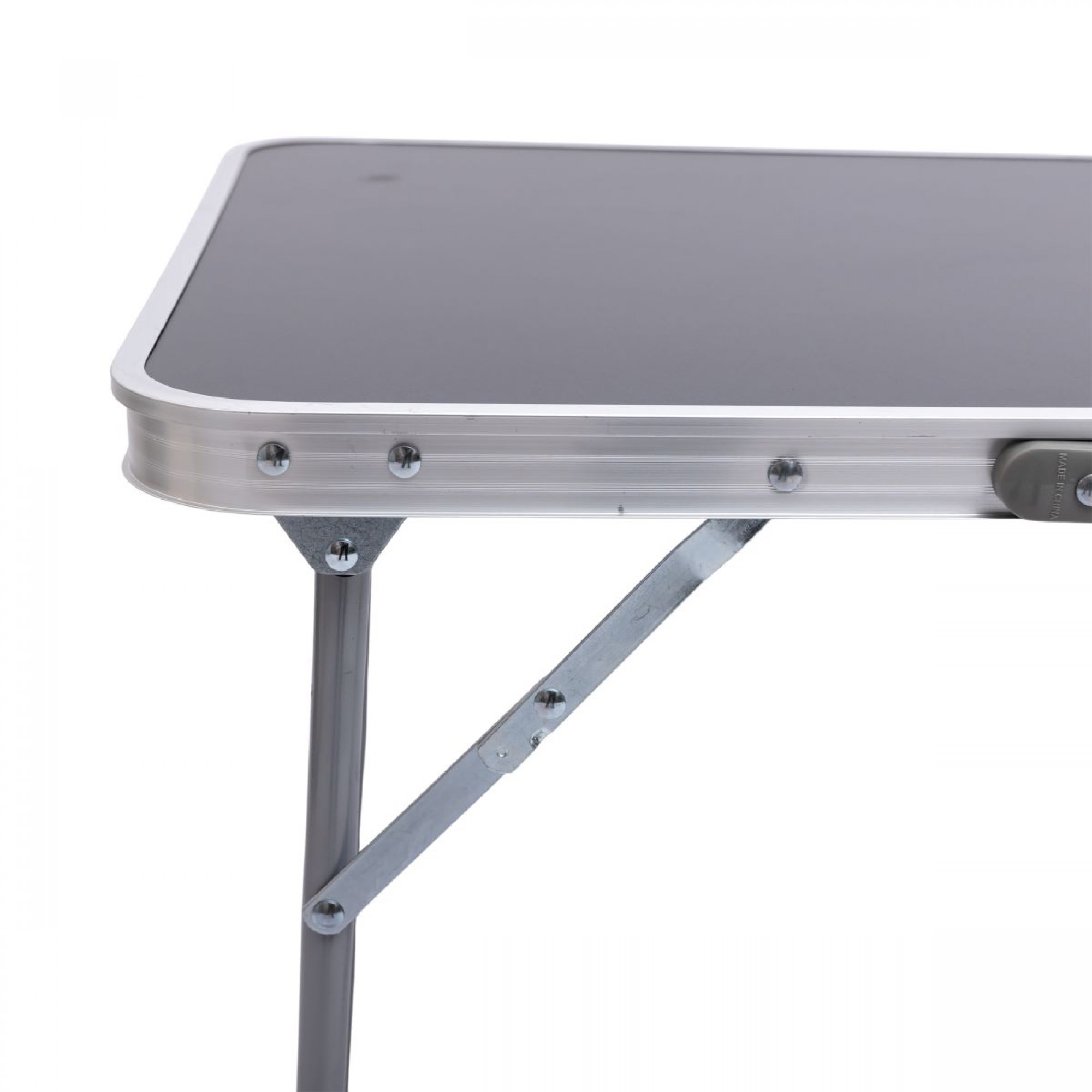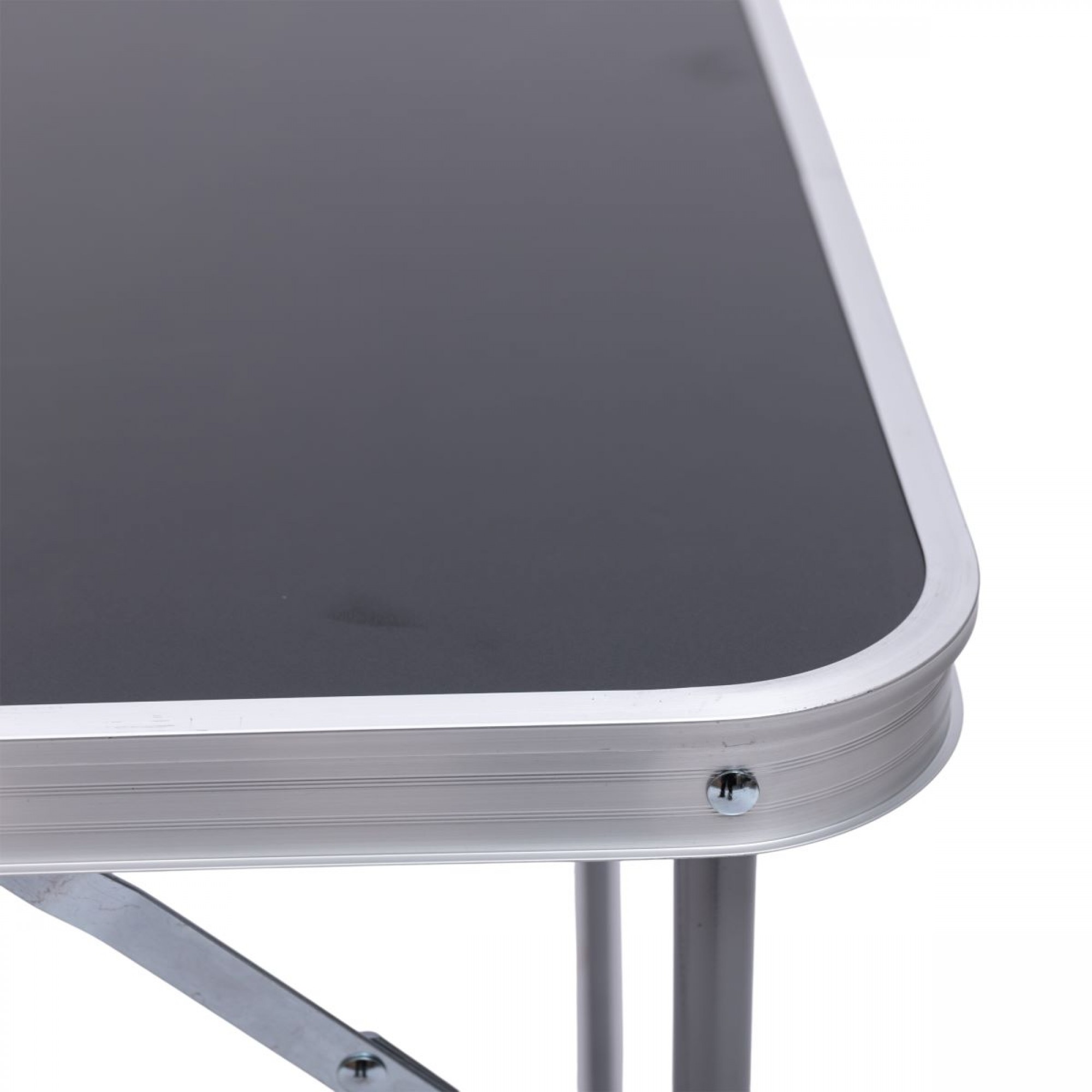 Складаний стіл з алюмінієвим каркасом — зручне рішення для виїздів на природу, кемпінгу або використання в умовах обмеженого простору. Його конструкція передбачає можливість швидкого складання і розкладання без додаткових інструментів. Після складання стіл набуває компактної форми, зручно фіксується і оснащений ручкою для перенесення, що спрощує транспортування. Поверхня стільниці виготовлена з МДФ, що поєднує легкість і достатню міцність для повсякденного використання. Каркас виконаний з алюмінієвого сплаву і доповнений сталевими елементами — така конструкція стійка до вологи і корозії. Ніжки фіксуються у відкритому положенні металевими упорами, а в складеному стані акуратно прибираються всередину, утворюючи єдину плоску поверхню. Така конструкція зручна для зберігання і не займає багато місця. Стіл підходить для використання на терасі, в саду або в поїздках. Завдяки продуманим деталям, таким як зручна ручка для перенесення і захисні накладки по краях стільниці, виріб відповідає основним вимогам функціональності і практичності. Характеристики складного столу для пікніка: Розміри столу в розкладеному вигляді: 70 x 50 x 60 см; Розміри столу в складеному вигляді: 70 x 50 x 5,5 см; Колір: чорний; Матеріал стільниці: МДФ; Матеріал каркаса (опор): високоякісний алюмінієвий сплав + залізна труба. Призначення розкладного столу: для кемпінгу та відпочинку на природі; для використання на дачі, терасі або в саду; зручний для транспортування та зберігання; підходить для використання в умовах обмеженого простору. Завдяки компактності, легкій вазі та надійній конструкції, складаний стіл стане практичним помічником у будь-якій ситуації, де потрібен зручний мобільний робочий або обідній стіл.
