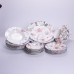 Столовий сервіз Fleur на 6 персон — чудовий вибір для тих, хто цінує гарний та практичний посуд. Набір виготовлений із міцної порцеляни та розрахований на довгі роки використання. Завдяки яскравому дизайну сервіз ідеально підходить як для щоденного використання, так і для святкових подій. Такий набір стане прекрасним подарунком до будь-якої урочистості та практичним рішенням для вашої кухні. Сервіз можна мити в посудомийній машині та використовувати у мікрохвильовій печі, що робить догляд простим та зручним. Склад столового сервізу Fleur: • тарілки супові — 6 шт.; • тарілки десертні — 6 шт.; • тарілки підставні — 6 шт.; • блюдця — 6 шт.; • чашки — 6 шт. Характеристики столового сервізу Fleur: • матеріал — порцеляна; • загальна кількість предметів — 30 шт.; • об’єм чашки — 300 мл; • діаметр — 26,5; 21,5; 19; 15,5; 10 см; • висота — 5,5; 1 см; • вага набору — 9,3 кг.