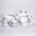 Столовий сервіз Geometry з високоякісної порцеляни — це поєднання стриманої елегантності та практичності. Такий набір створений, щоб перетворити кожну трапезу на особливу подію: від щоденних сімейних обідів до урочистих вечерь. Витончений геометричний візерунок у поєднанні із золотою облямівкою надає сервізу сучасного, але водночас класичного вигляду, який легко впишеться в будь-який інтер’єр. Сервіз стане чудовим подарунком до будь-якого свята і зручним для щоденного використання. Він підходить для посудомийної машини та мікрохвильової печі, що робить догляд легким та зручним. Склад сервізу: • тарілка супова: 6 шт.; • тарілка десертна: 6 шт.; • тарілка підставна: 6 шт.; • блюдце: 6 шт.; • чашка: 6 шт.; • салатниця: 1 шт.; • блюдо: 1 шт. Характеристики столового сервізу: • матеріал: порцеляна; • кількість предметів: 32 шт.; • об’єм чашки: 300 мл; • об’єм супової тарілки: 400 мл; • об’єм салатниці: 1,4 л; • розміри: 35×26; 25; 23; 20; 17; 14; 8,5 см; • висота: 7; 6,5; 5; 3; 1,5 см; • вага набору: 10,4 кг.