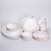Подаруйте своєму столу витонченість та весняний настрій із порцеляновим сервізом на 32 предмети. Ніжний малюнок із маленькими суничками та делікатне окантування у вигляді тонкого мереживного узору створюють легку й романтичну атмосферу. Такий сервіз ідеально підходить як для щоденного використання, так і для святкової подачі. Особлива увага приділена не лише дизайну, а й практичності: порцеляна має високу міцність, рівну блискучу глазур, а декоративні елементи виконані акуратно та витримують часте використання за умови правильного догляду. Цей набір стане вдалим доповненням домашнього затишку та чудовим подарунком, що залишає приємне враження. Склад порцелянового сервізу: • тарілка глибока: 6 шт.; • тарілка десертна: 6 шт.; • тарілка підставна: 6 шт.; • блюдце: 6 шт.; • чашка: 6 шт.; • салатниця: 1 шт.; • блюдо: 1 шт. Характеристики сервізу: • матеріал: порцеляна; • кількість предметів: 32 шт.; • об’єм чашки: 200 мл; • об’єм супової тарілки: 400 мл; • об’єм салатниці: 1,4 л; • розміри: 35×26; 25; 23; 20; 17; 14; 8,5 см; • висота: 7; 6,5; 5; 3; 1,5 см; • вага набору: 10,4 кг.