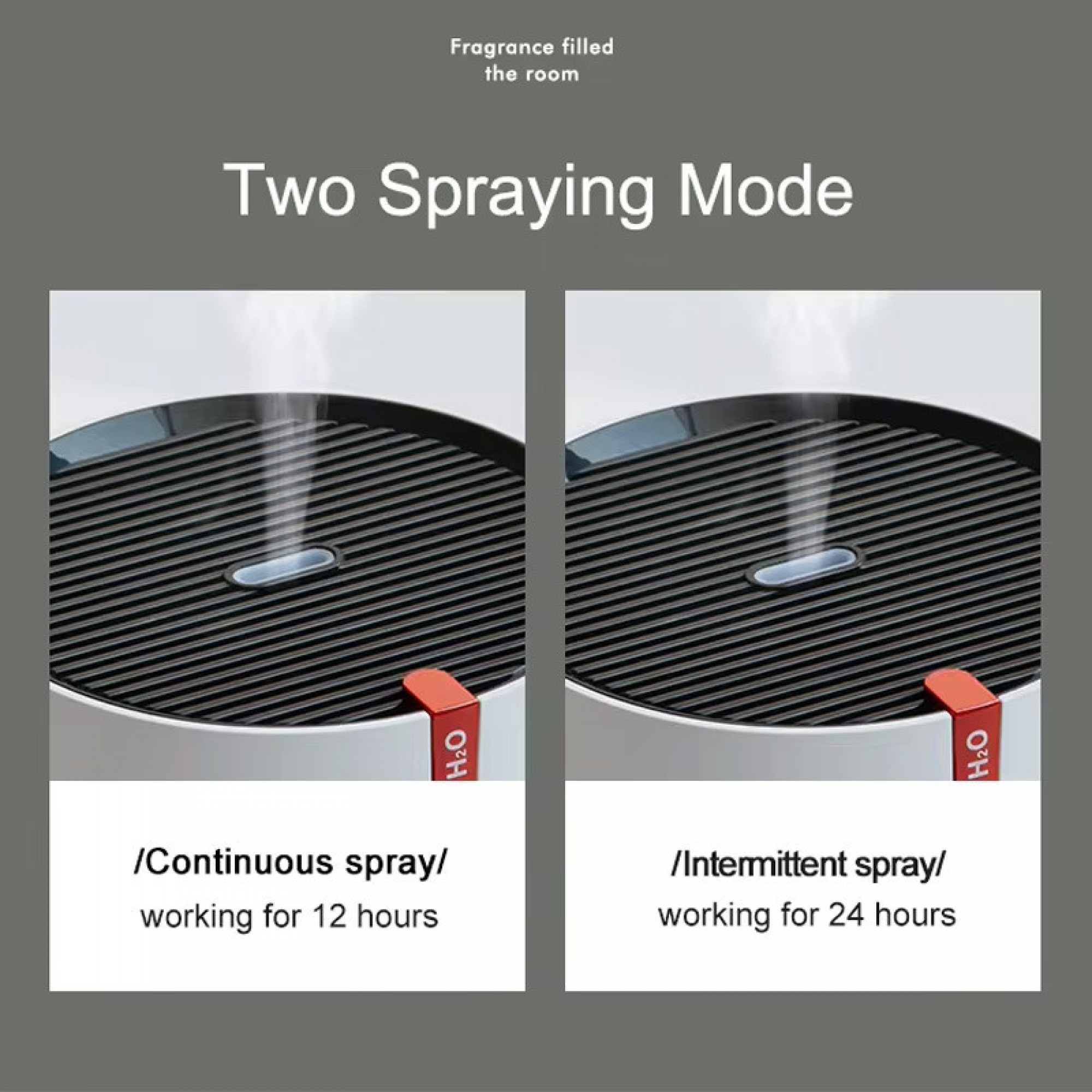 Дифузор має два режими туману: безперервний (до 12 годин) і уривчастий (до 24 годин), забезпечуючи тривале зволоження на одній заправці водою (230 мл)